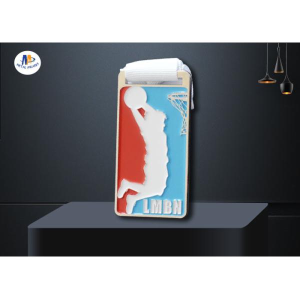Rectangle Shape Soft Enamel Medals, Shiny Silver Finish Metal With White Woven And Backside Sandblast Medailles